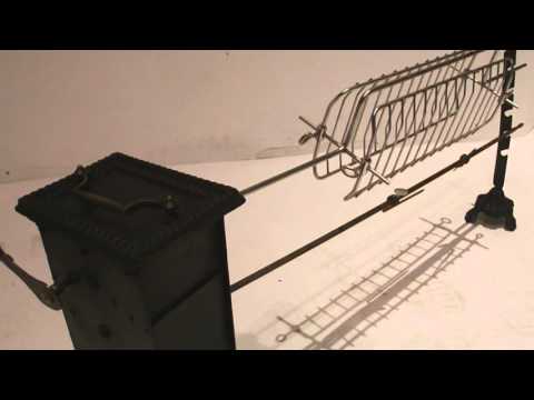 complete set double-clutch mechanism, powerful. the back is about 34 turns of the crank. this former spit sounds after thirty minutes of cooking approximately, to prevent this you need to go back in.